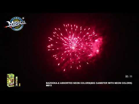 Cool 60g long canister shells with six neon colors that light up the night. Truly amazing towers of glory! Maximum blast!